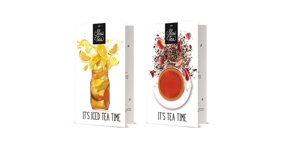 Diseño de las cartas de té de la marca Slow Tea. Trabajo de la carta para tes fríos y calientes según temporada.